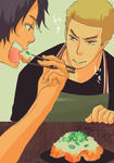 新刊の表紙、見てくださってありがとうございます!いつものようにこの上なくあっつくるしくて申し訳ないです;;(笑)これ1日で描くつもりだったのに、このお肉だのなめこのみそ汁のおかげで2日かかってしまいました;;(ばかか)きっと柳くんも真田くんも、夏だからといって食欲減退したりしないんだと思います。そうですよね、いっぱい食べて元気でいてほしいです。ああ~いいわぁはじける若さ…!(笑)