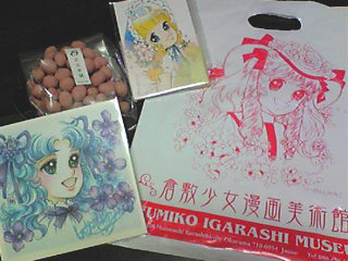 我らがいがら○ゆみこ先生のグッズです!な…懐かしい~!うわ~かわいい~!左下のイラストは、なんと“願いがかなう”色紙だそうで、こちらは勉学と才能がアップするものだそうです!よーしさっそく部屋の東側に飾って……って自分の才能ってなんだ…?(じゃなんか勉強しろよ笑)