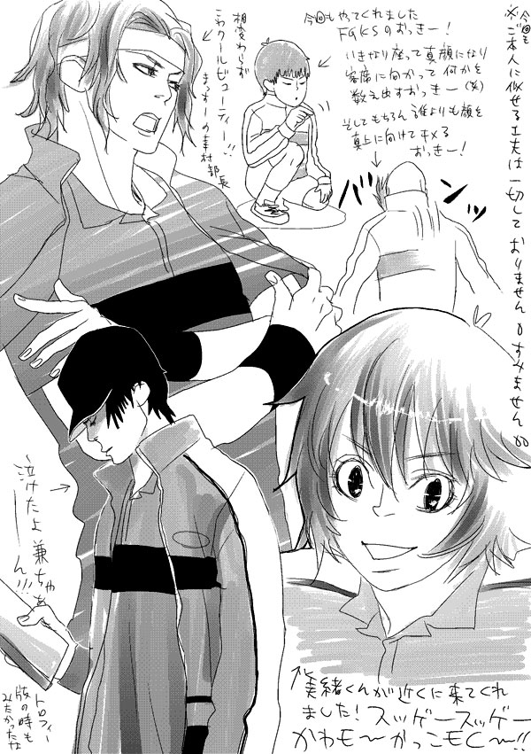 入道コーチがコーチ陣イケ好きかねぇ設定に萌えました。なにそれ萌える…ゆきおとかイケ好かないんだね。「コシマエに何すんのや!!」って駆けつける金ちゃんはほんとに心優しいコですね!