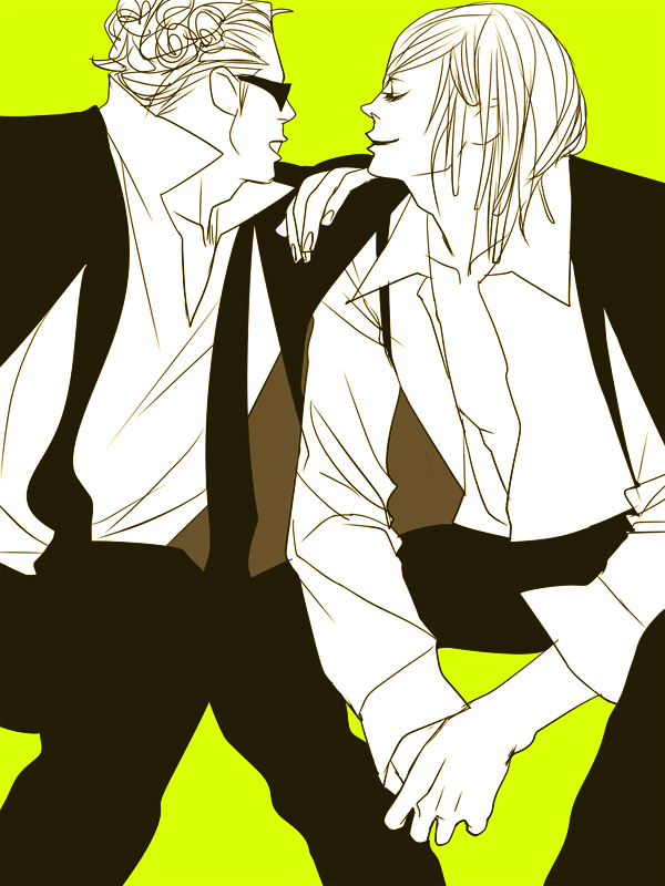 どう見ても見上げるほどのデカい二人は、向かって左がギターのミック番長、右が同じくギターのジムです。とある同人作家さんのお言葉を借りて言います。デカすぎてギターがウクレレに見えます。ミック番長は腕まくりしてギターを弾く姿が、もう比類なきかっこよさで失神しそうです。余談ですけど私、腕まくりしてる人に弱いんですよね(笑)