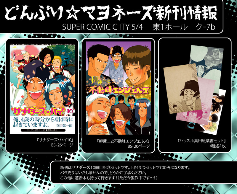新刊なんですけど、春コミに出すはずだったサナダーズ10も発行する予定です。上のサンプルは柳先輩幸せ本のさわりです。これのどこが柳先輩幸せ本なのか私もわかりませんが(笑)サナダーズ10とあわせて楽しんでいただければと思います(^v^)この原稿は震災の前に描いてたんだよなぁ~と、データ見ながらなんだかしみじみしてしまいました。