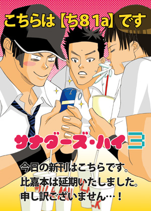 スパコミ参加されたみなさま、おつかれさまでした~!スペースに立ち寄ってくださったみなさま、本当に本当にありがとうございました!!!たくさんの方に足を止めていただいて、とってもうれしかったです!実は私5月1日から寝ていなかった(バカの境地)上にひとりだったので、合計金額をお伝えする際、ろれつが全く回ってなくて聞き取りづらかったと思います~すみません;;そんなヨレヨレの私でもありがたいお言葉をかけていただき、ポスターを見て笑っていただき、それが今の自分にとって最高の自慢です。本当にありがとうございました…!!!比嘉本持って行くことができず、本当に申し訳ございませんでした…次回こそは必ず!